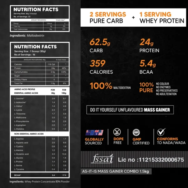 AS-IT-IS Mass Gainer Do-It-Yourself Combo with 2:1 Carb & Protein Ratio – 1.5kg